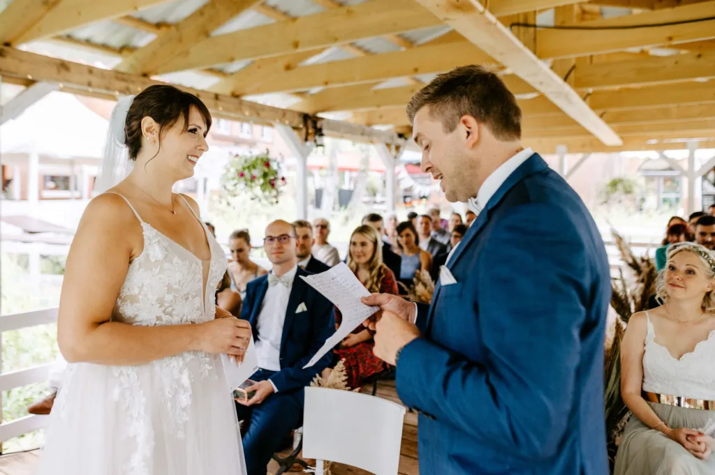 Trauung: Die Möglichkeit, eure freie Trauung im Garten oder in der Scheune abzuhalten, macht das Landhaus Westerhof zu einem ganz besonderen Ort für eure Hochzeit. Die rustikale Atmosphäre und der ländliche Charme verleihen eurer Zeremonie eine besondere Note.